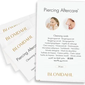 Blomdahl Piercing Aftercare är rengöringsservetter för nytagna hål i öra, näsa och navel.